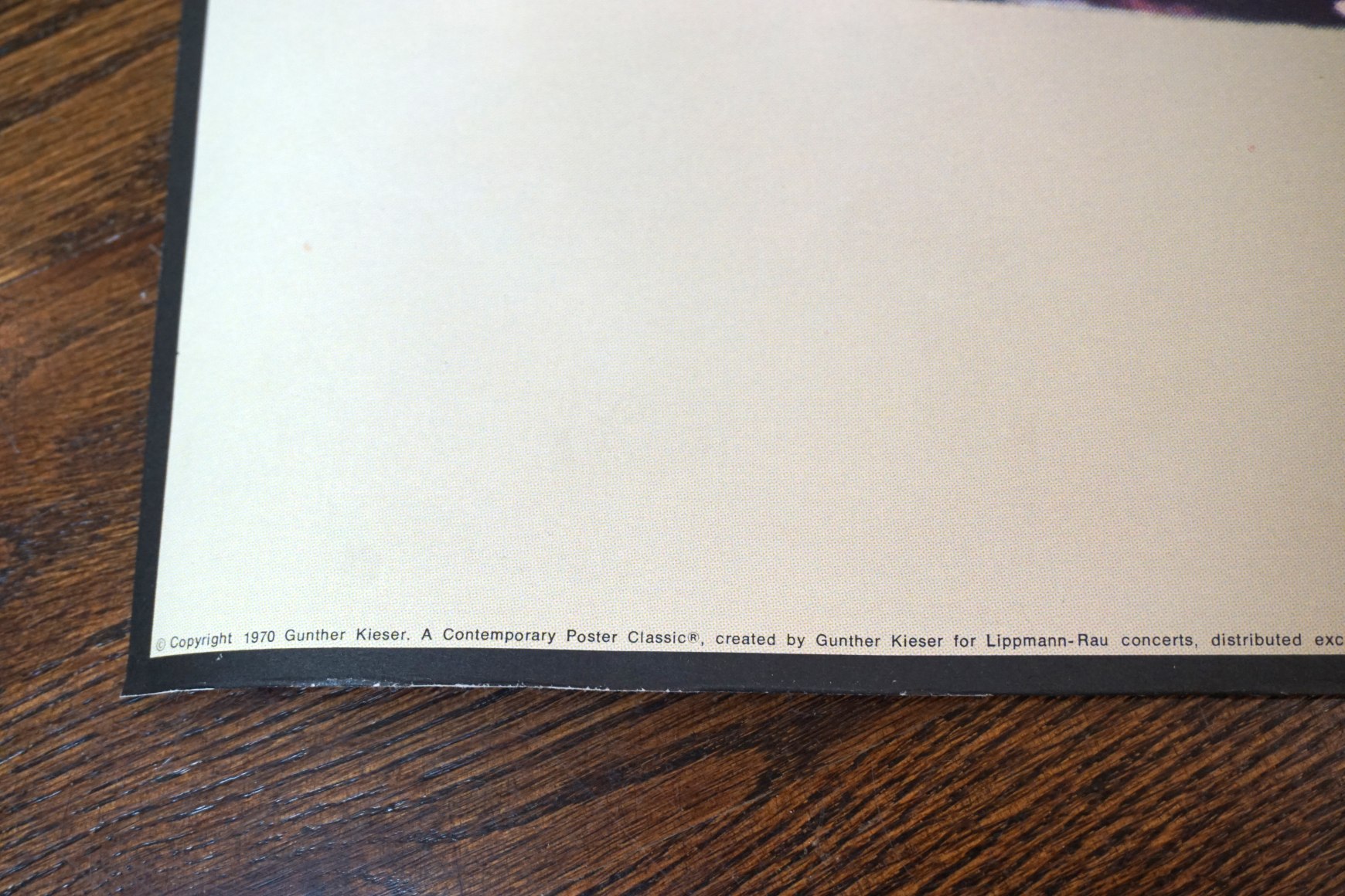 This is a huge subway-sized concert poster advertising a January 1970 concert by Fleetwood Mac at the Deutsches Museum in Munich.  This poster also has important historical significance for marking the end of the “Peter Green Era” for the band. The original blues-based lineup of Fleetwood Mac was responsible for bringing to life the Peter Green song “Black Magic Woman,” which Santana later covered to legendary popularity.