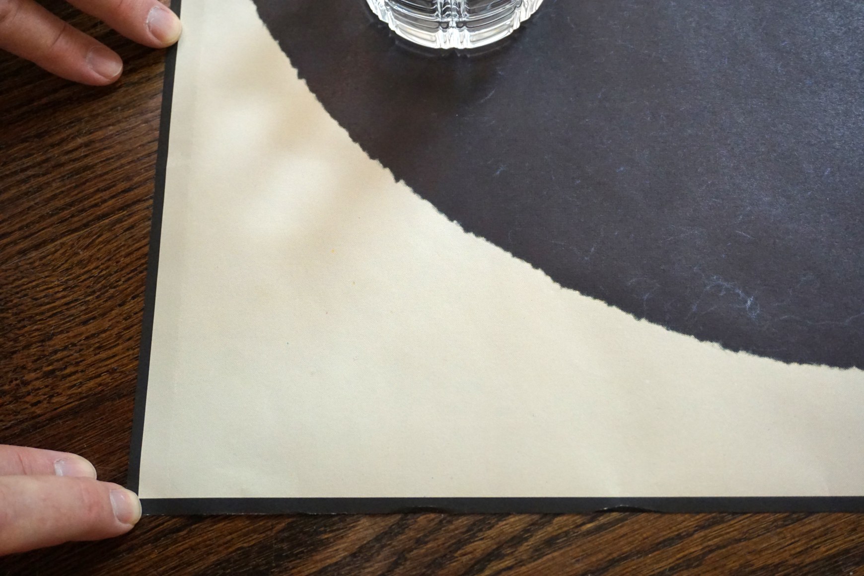 As the poster is quite large and thin, to protect it we had it professionally linen-backed. This "base" acts as a support for framing the poster and also preserves it against potential tearing and folding while the PH friendly glues act to neutralize the yellowing effects of oxidation on paper.