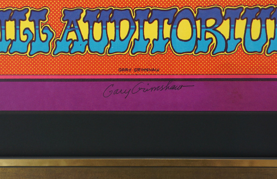 The December 14 and 15 shows at the University of Michigan’s Hill Auditorium (capacity, 4,100) were the last shows in a legendary Fall of 1971 before the band closed out New Year’s Eve at Winterland. The poster was done by Detroit poster artist Gary Grimshaw, whom many consider to be nearly the equal of the Big Five San Francisco artists.