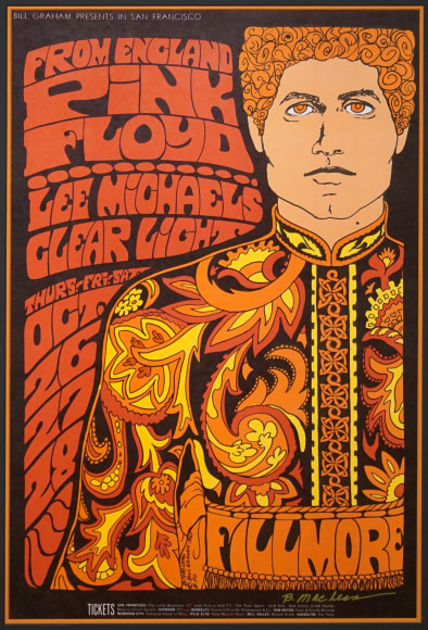 Pink Floyd, “From England,” was on their first tour of the United States. Unfortunately their manager screwed up the band’s visa’s and they were not able to fly to the U.S. until November 1 – after these dates. They finally got to play at Winterland November 4, opening for Big Brother and the Holding Company. Pink Floyd had just released “Piper at the Gates of Dawn” two months earlier and were at the height of their Syd Barrett period. Barrett was well into the bizarre behavior that led to his replacement by David Gilmour by the end of this year.