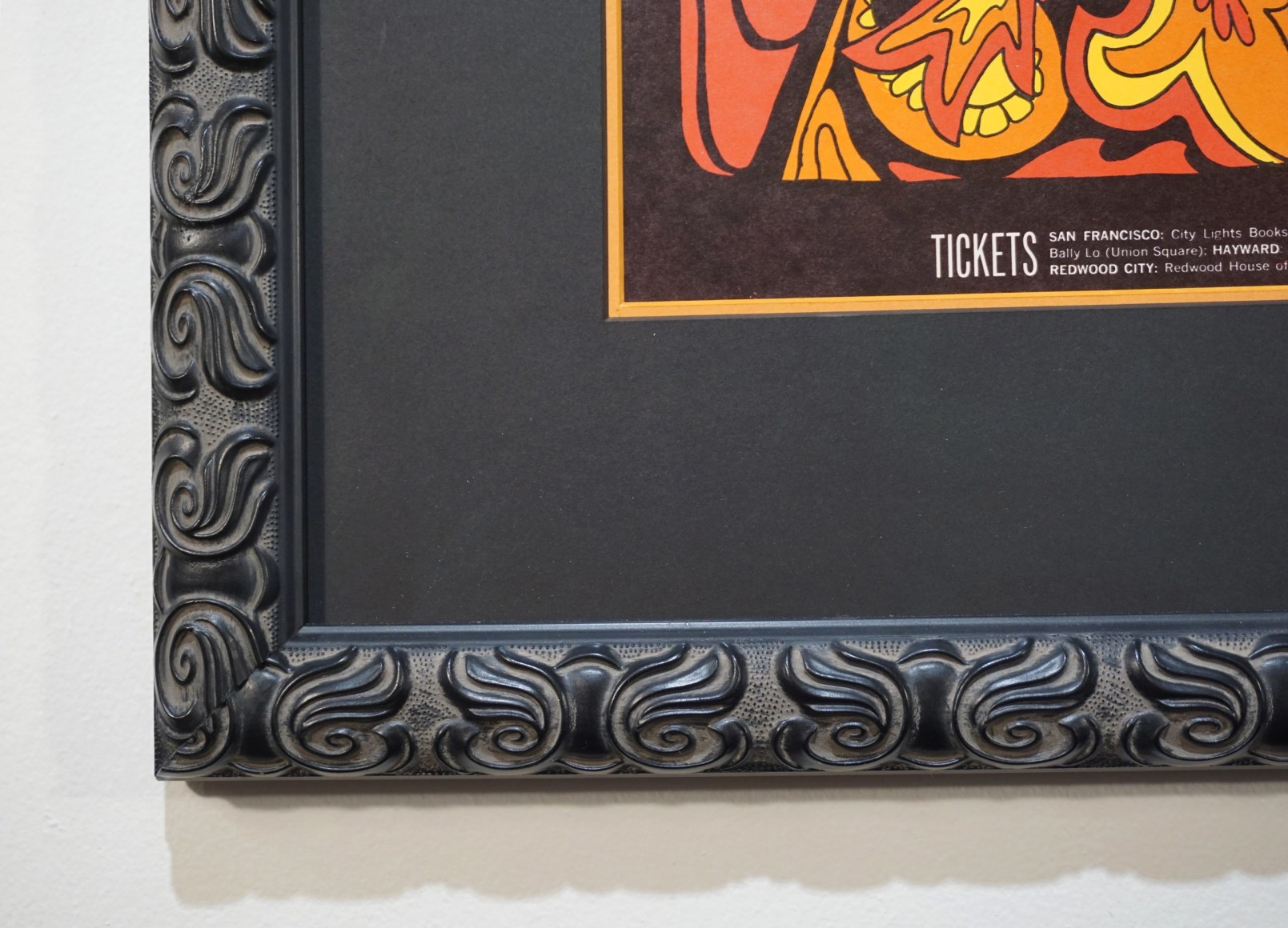 The Nehru Jacket is a hip-length tailored jacket with a high, closed Mandarin collar that was popular in the late 1940’s and afterward among the Indian rich and powerful (Indian meaning “from India). They became popular in the late 1960’s as the hippies explored many other cultures, religions and fashions. In this poster a curly haired man is wearing a very psychedelic Nehru Jacket which has a sash advertising the Fillmore and the venue. This highly sought out poster by Bonnie MacLean, the only female artist in the late 1960’s genre, who was then married to promoter Bill Graham.
