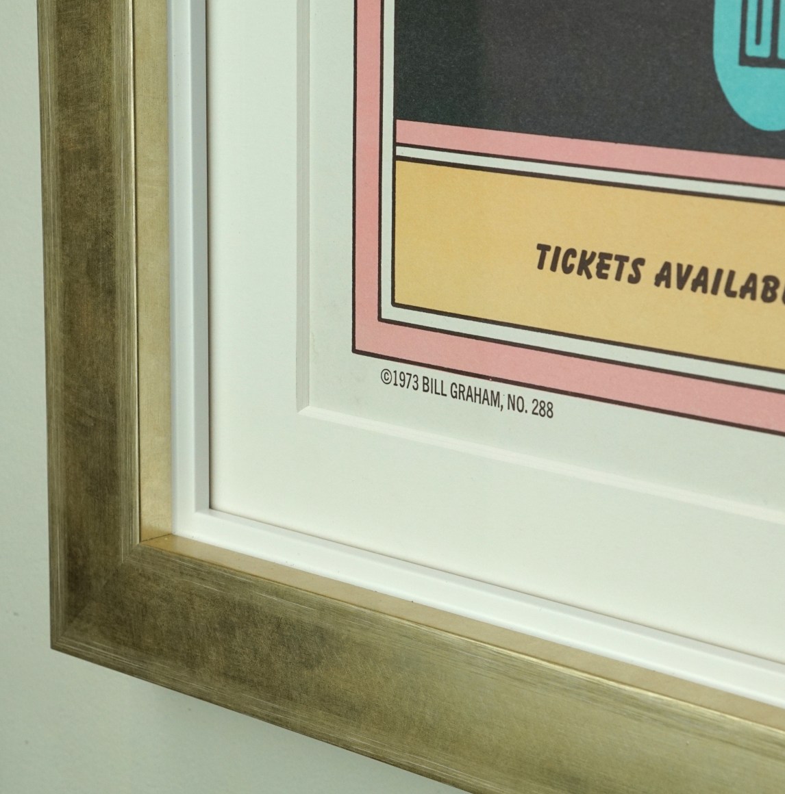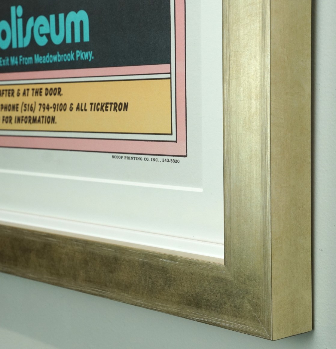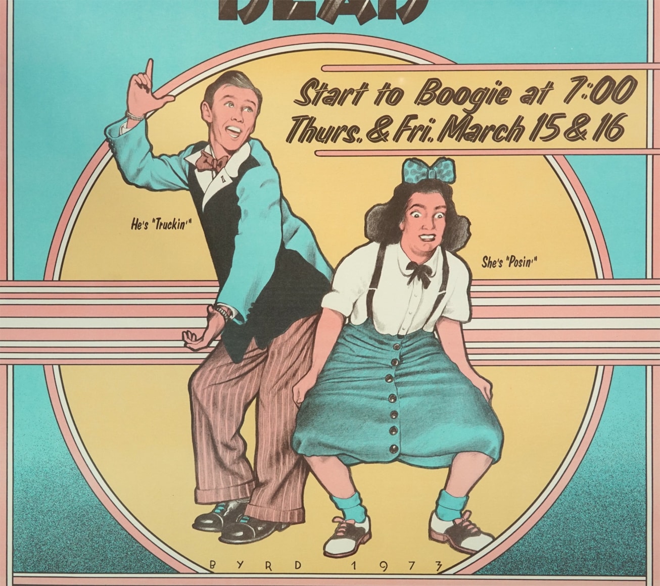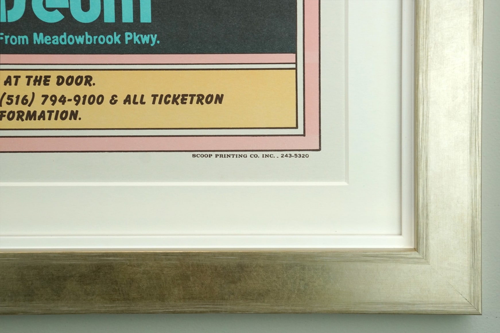 This is the rare first printing of the “A Swell Dance” concert poster by David Byrd. The concerts at the 18,000 seat Nassau Coliseum was sandwiched between the Dead's successful tour of Europe in early 1972 and their release of Wake of the Flood in November, 1973. The March 15th show was Phil’s 33rd birthday. By now, the Dead had established themselves as one the premier live acts in rock, and they were headlining arenas with regularity. On this date, they delivered the first of the 42 shows they would play at Nassau Coliseum.