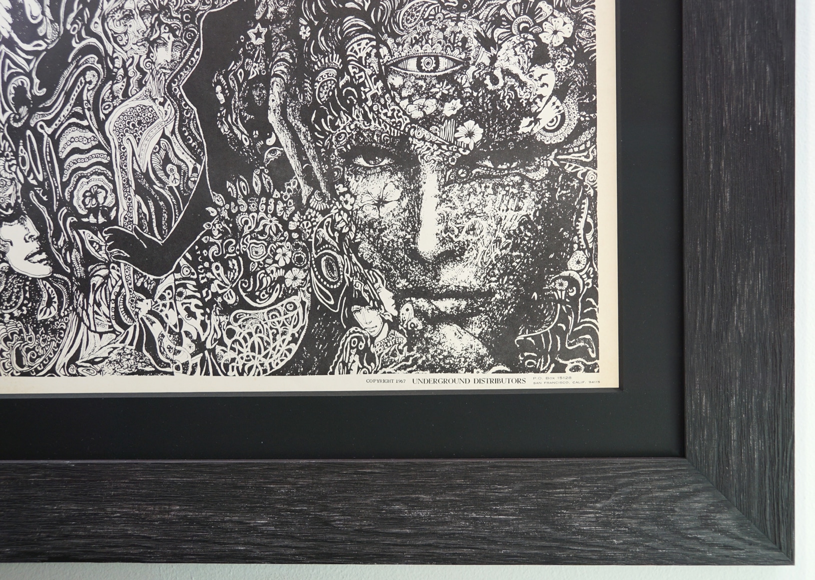 This poster at this point in time is probably one-of-a-kind. There is no information about it, about the artist Donna Dichter, about the company, Underground Distributors, nothing. It’s important to note that the late 1960s ushered in a huge craze for posters. Teenagers covered their walls (and ceilings) with these inexpensive, disposable works of art and hundreds of printers and poster stores and distributors sprang up to serve the exploding market – but often these companies were in business for just a few years and then moved on to chase the next fad.