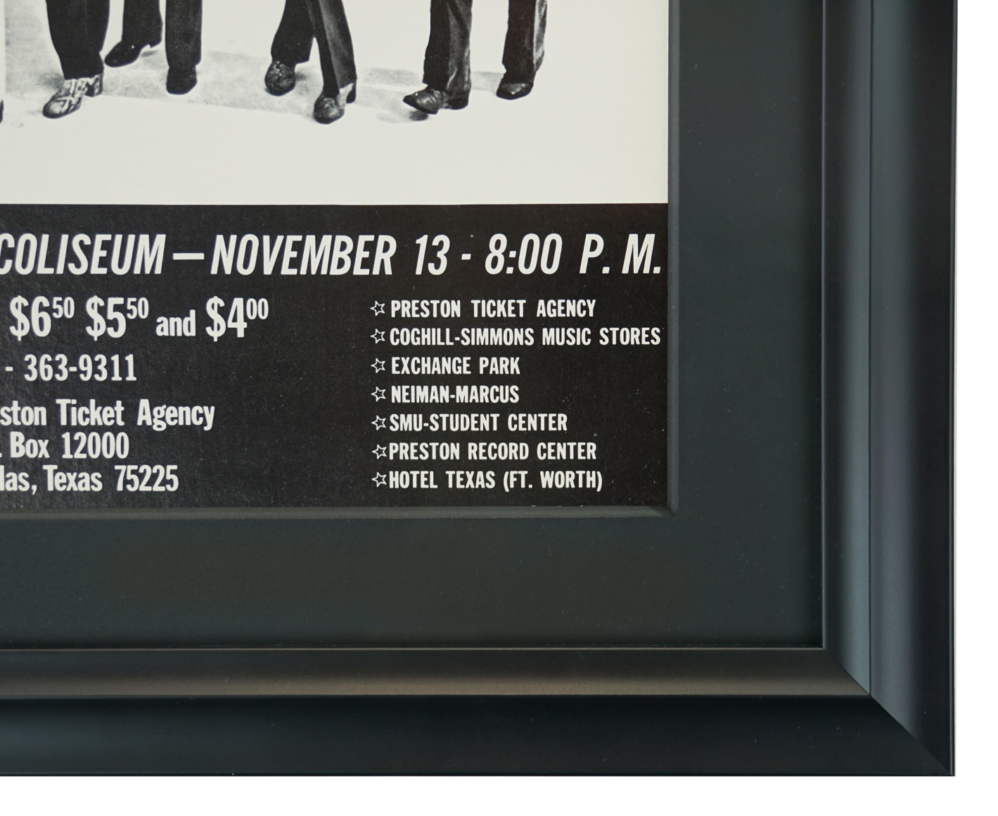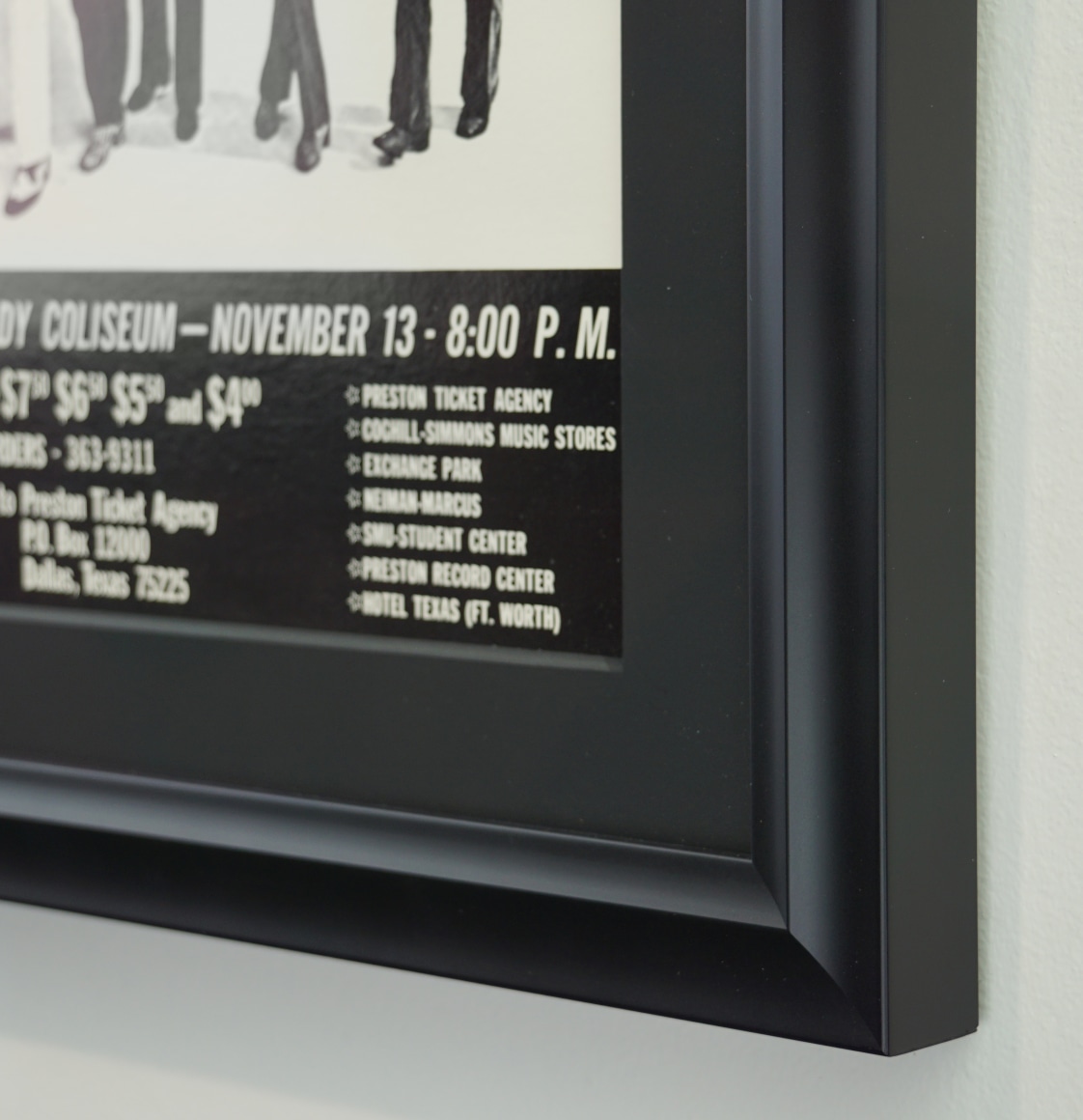 This small sized Rolling Stones poster from Texas advertises a concert appearance at the Southern Methodist University's Moody Coliseum in Dallas on November 13th 1969. Opening acts were Terry Reid (Jimmy Page's first choice for singer in Led Zeppelin) and Chuck Berry but they were not listed on this Concerts West poster. Although Brian Jones appears on the poster, he had passed away on July 3rd, several months before the show took place.. It was part of the band's legendary November 1969 American Tour which ended with the disaster at Altamont.  The poster is on thin paper and so has been backed with archival linen.