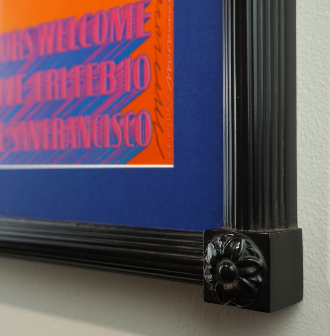 This iconic Moscoso poster in the Neon Rose series calls to mind some of the crazier fashions to come, such as fat platform heeled shoes worn by men. Here the drop shadows tunnel away from you almost to a vanishing point. This show was scheduled for the Matrix which allowed minors (unlike the Fillmore and Avalon) and that’s why, “Minors Welcome,” is mentioned prominently on the poster. Sopwith Camel liked this poster enough to make it the cover of their first album.
