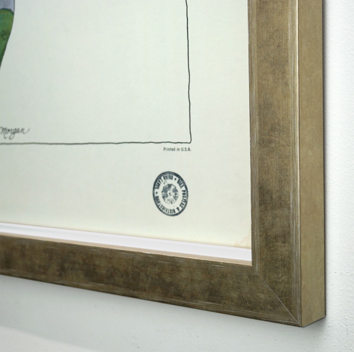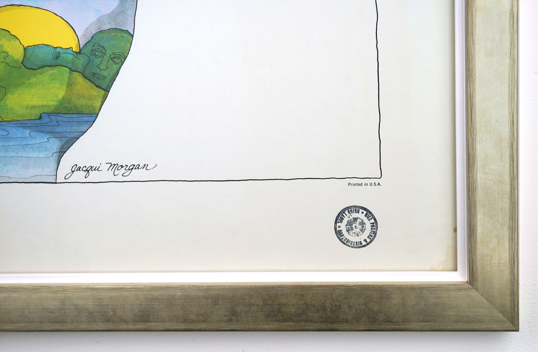 This poster was reprinted in 1969 and was smaller, measuring 24" x 36" and also darker in hue. This is the large first printing of the poster, done in 1967. There is a smaller, darker version measuring 24" x 36" that was done in 1969. Also, this one has a union label stamped on the bottom right. The union labels you often find on vintage posters, were a way for unions to indicate that the posters were produced by members of their respective unions. These labels served as a mark of quality and craftsmanship, as well as a way to promote fair labor practices.