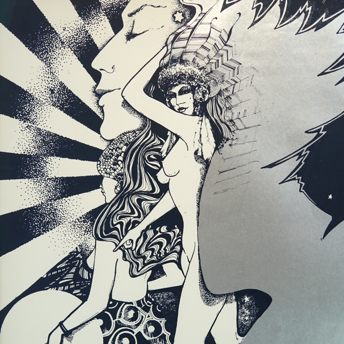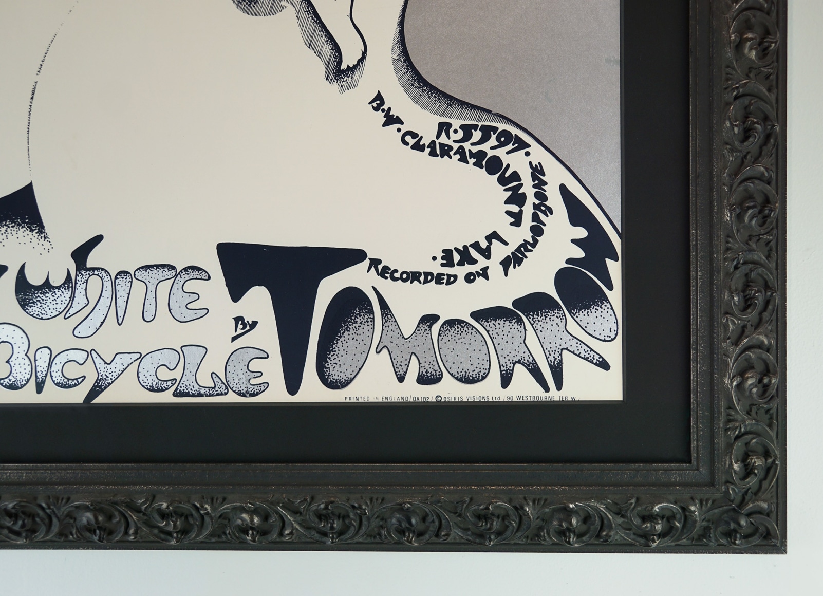 This amazing silkscreen poster was done by Hapshash and the Coloured Coat and was created to promote the new single by the band Tomorrow, called, “My White Bicycle.” The posters they (Hapshash was Michael English and Nigel Waymouth) designed for the UFO Club and Oz magazine drew on elements of Mucha, Ernst, Magritte, Bosch, Blake, and Dulac, pulling them together in a style that art critic George Melly called, "Nouveau Art Nouveau" and that was also referred to as, "Nouveau Frisco"