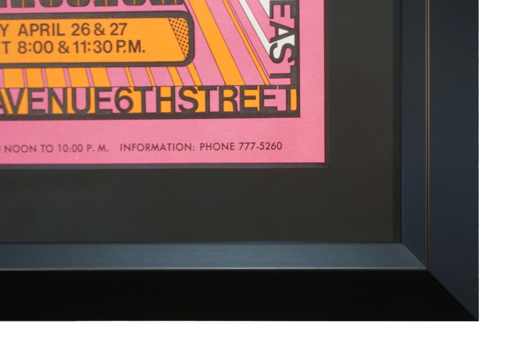 This was David Byrd's first concert poster for Bill Graham. The 28 year-old artist admitted he was "flying blind," and the design was his interpretation of "... what they were doing in San Francisco."