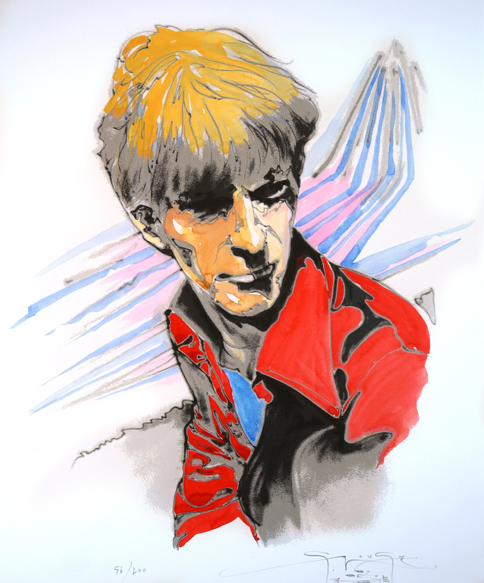 These serigraphs were done as part of a limited-edition by Stanley Mouse reprinting his airbrushed black and white sketches from the cover of Workingman’s Dead and adding color to some of them by hand in watercolor. There were 200 sets made in 1988 and this one is numbered 56/200. Because each was watercolored by hand, no two pieces are alike. It is also unclear how many he hand-watercolored as many copies of this portfolio are just in black and white.
