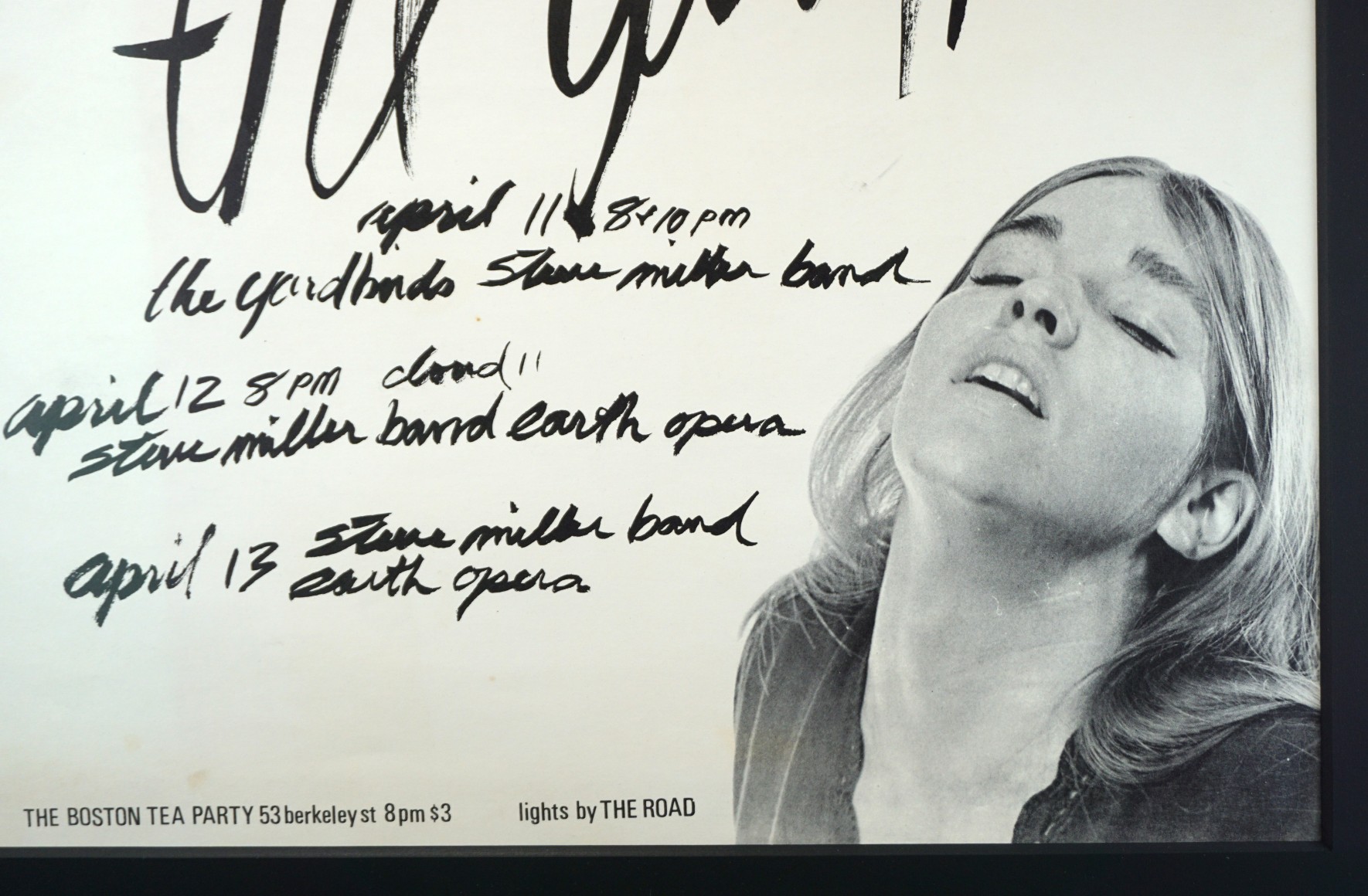 Yardbirds poster for concert at Boston Tea Party, 1968, with Steve Miller and Earth Opera. Poster by Bob Driscoll